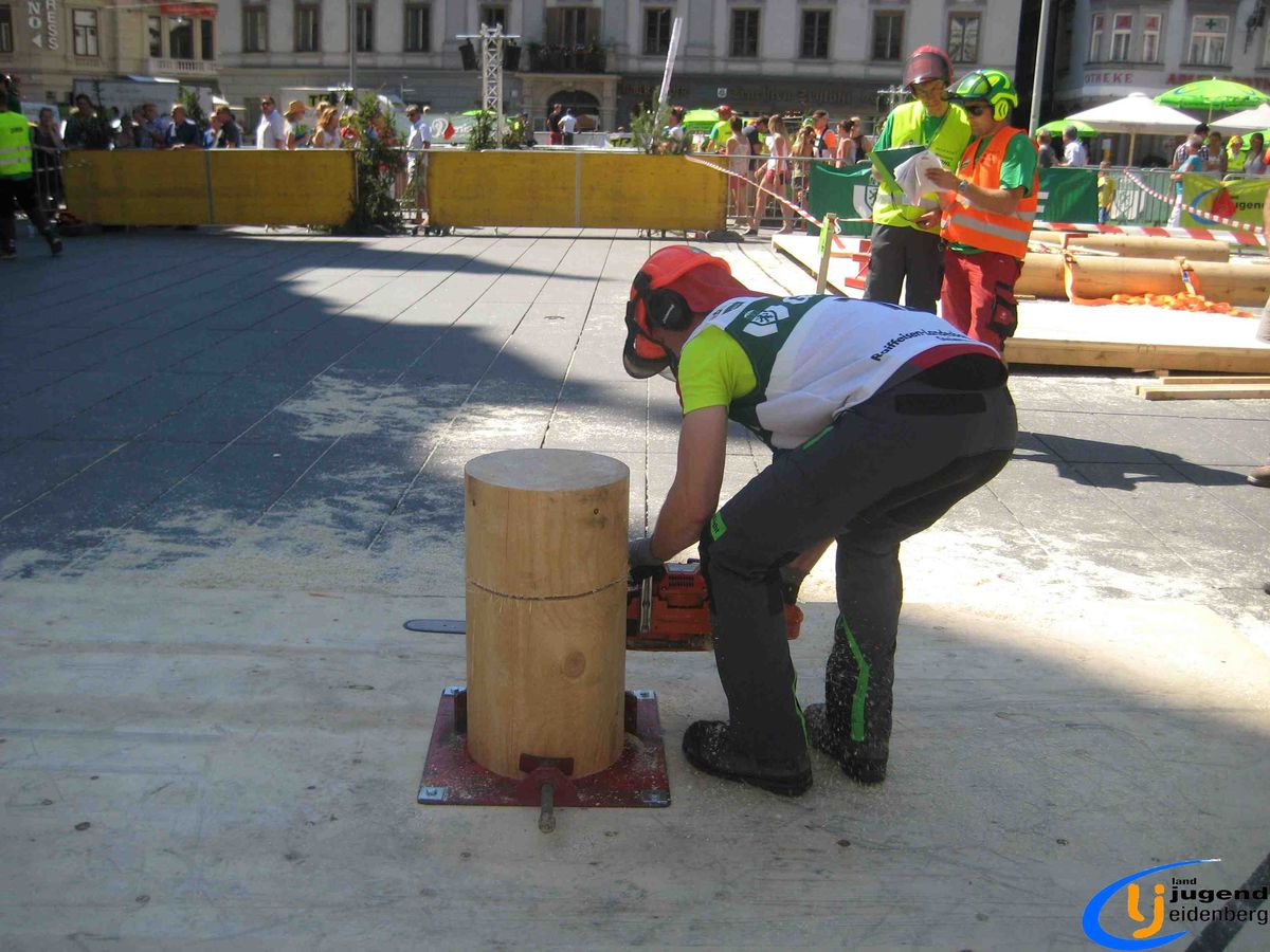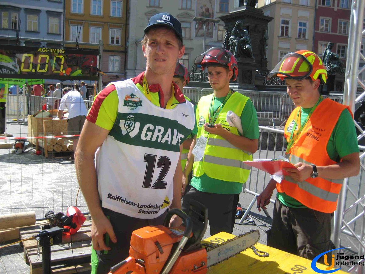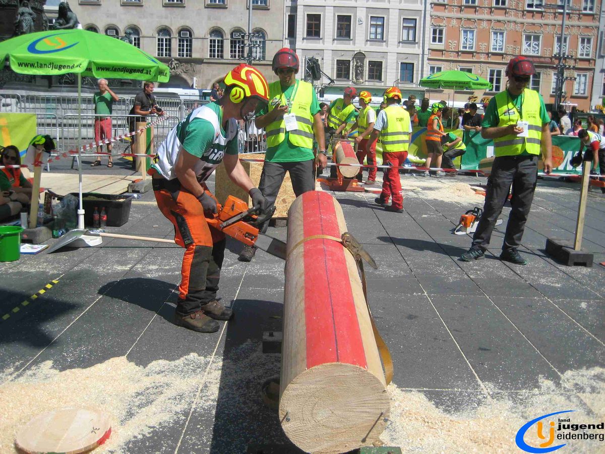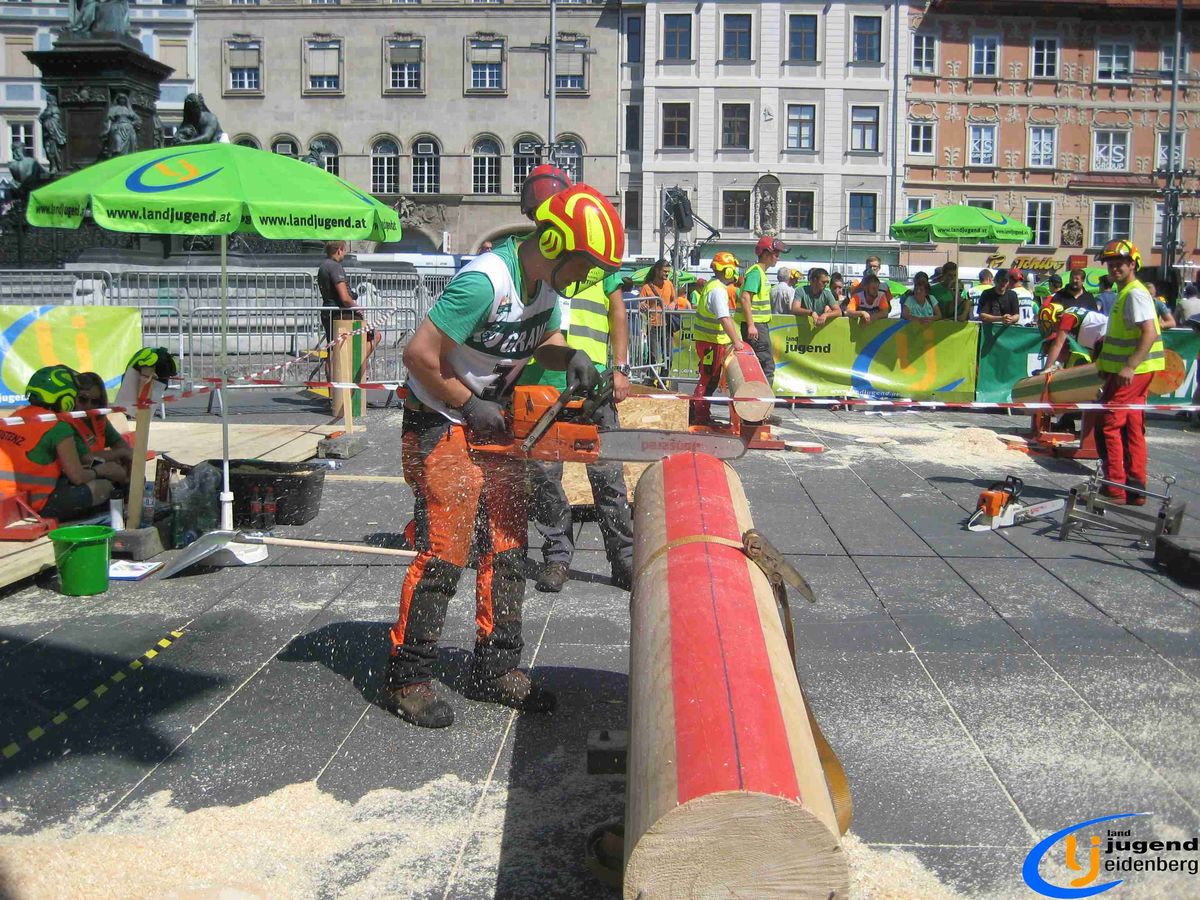 Der Austragungsort des diesjährigen Bundesbewerbes der Forstarbeit war die steirische Stadt Graz. Insgesamt 60 Starter aus allen Bundesländern Österreichs nahmen teil und fanden sich voller Kampfgeist am Grazer Hauptplatz ein. Unter den Teilnehmern aus Oberösterreich waren auch Lukas und Florian Mair aus Eidenberg vertreten.