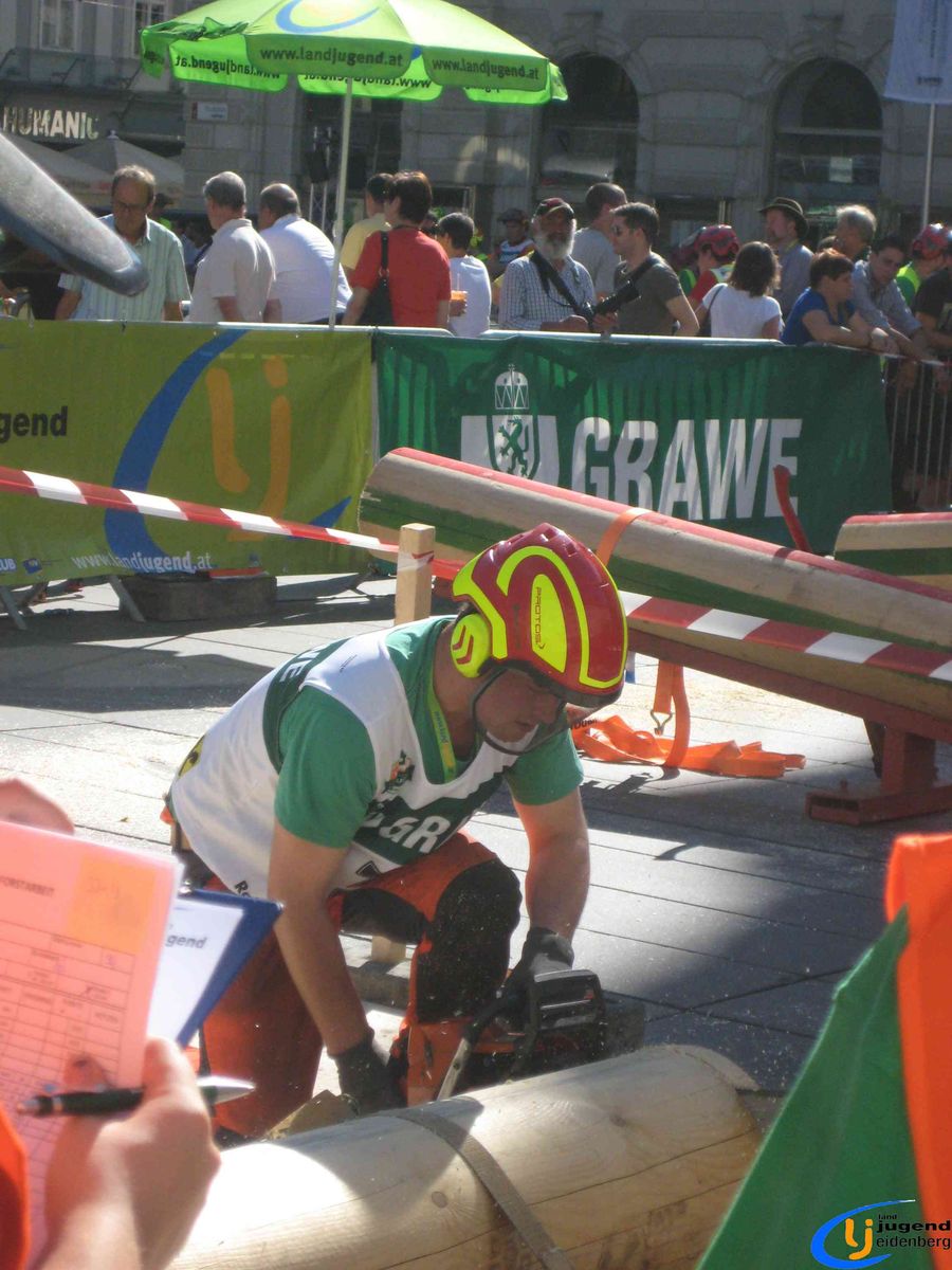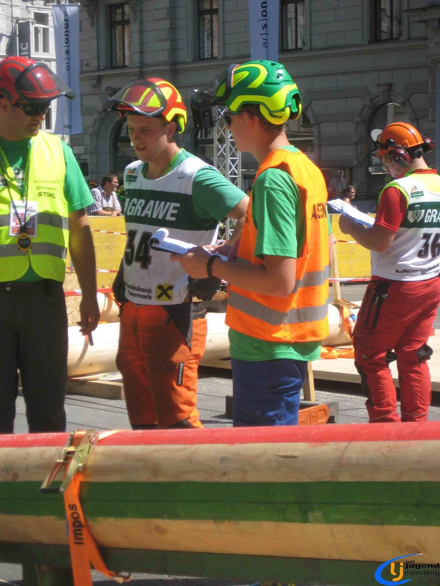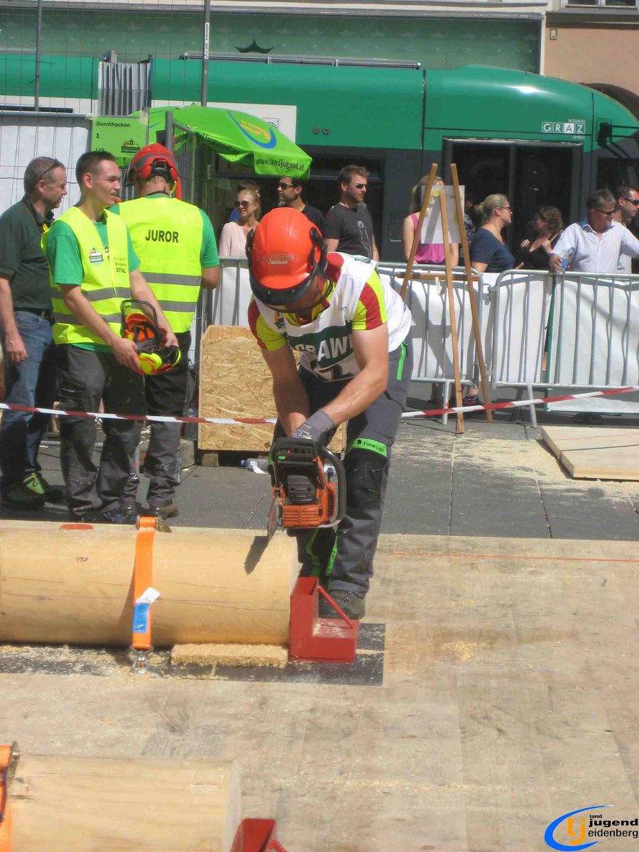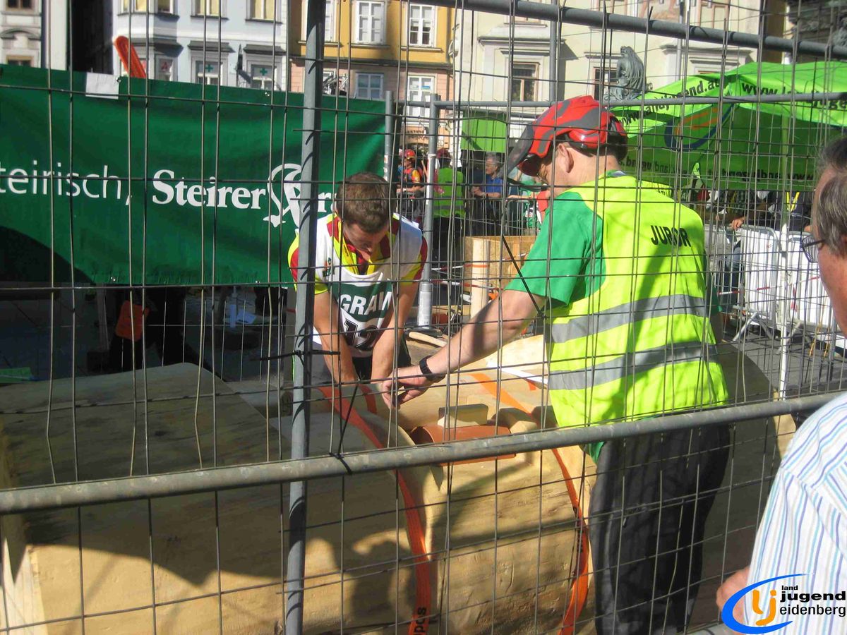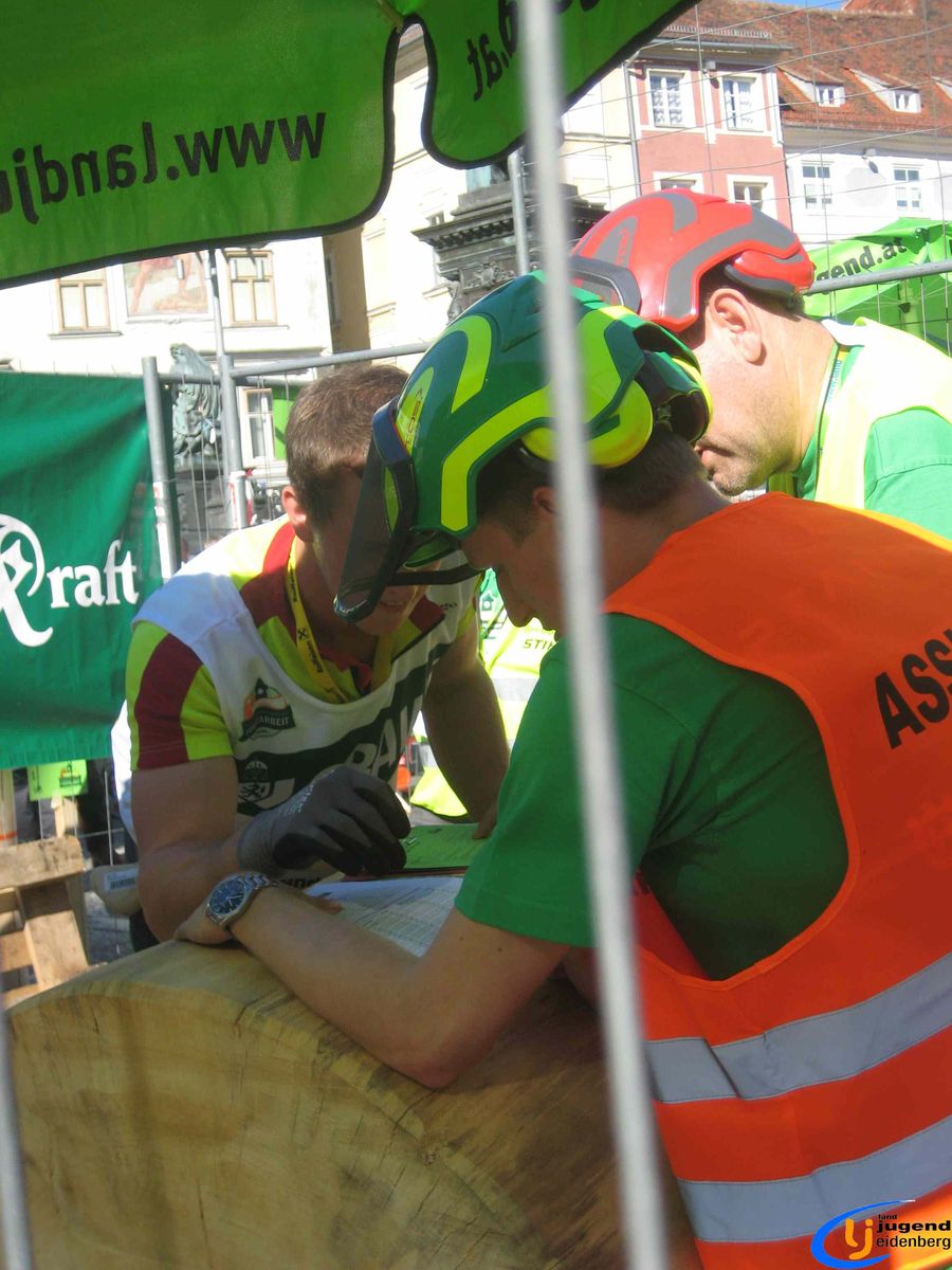 Der Austragungsort des diesjährigen Bundesbewerbes der Forstarbeit war die steirische Stadt Graz. Insgesamt 60 Starter aus allen Bundesländern Österreichs nahmen teil und fanden sich voller Kampfgeist am Grazer Hauptplatz ein. Unter den Teilnehmern aus Oberösterreich waren auch Lukas und Florian Mair aus Eidenberg vertreten.