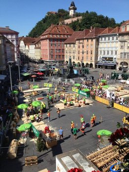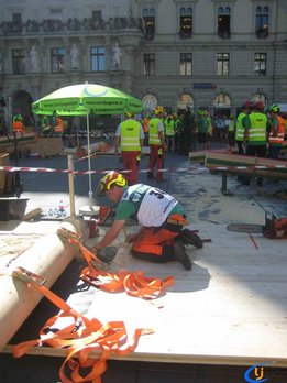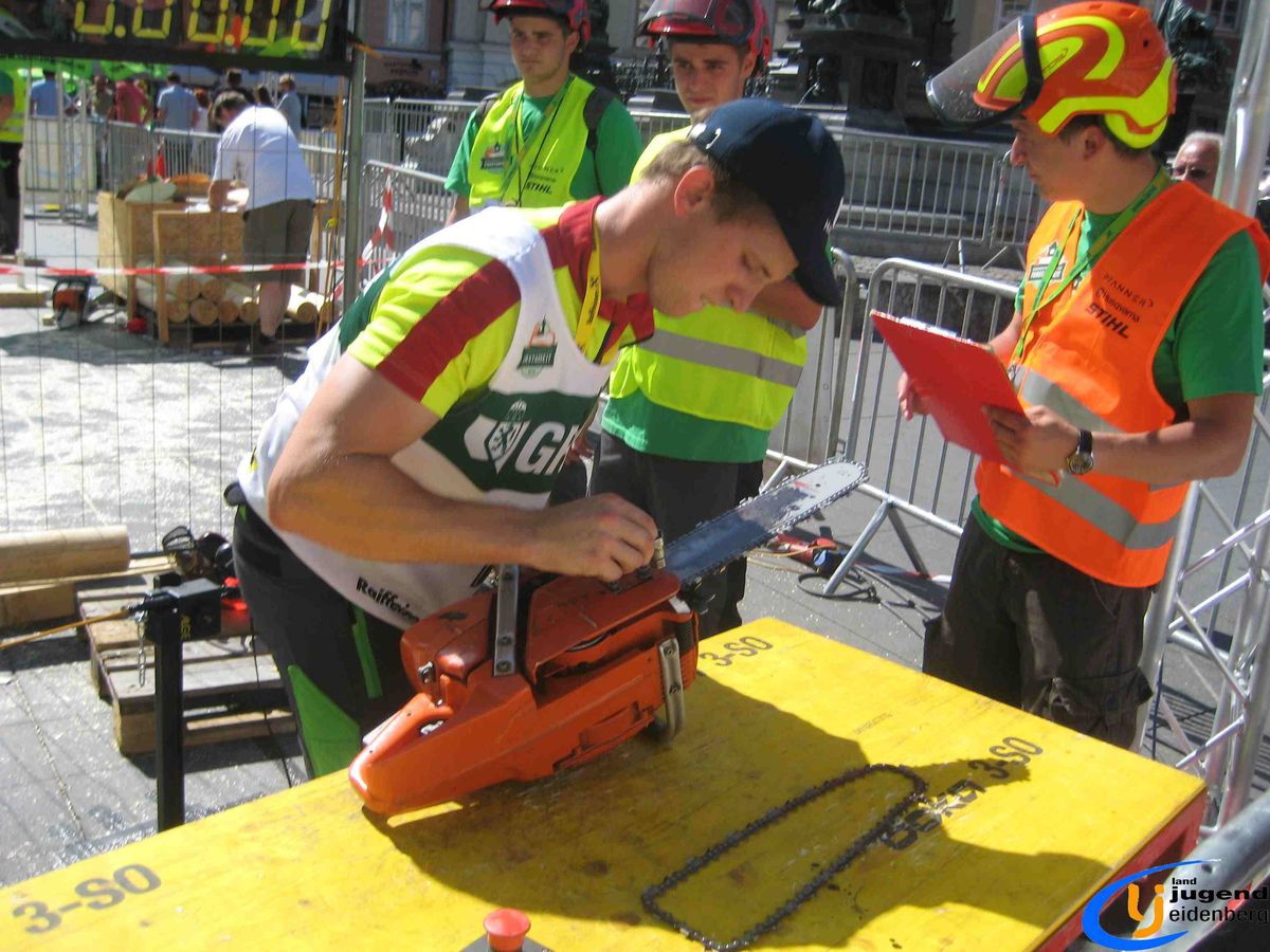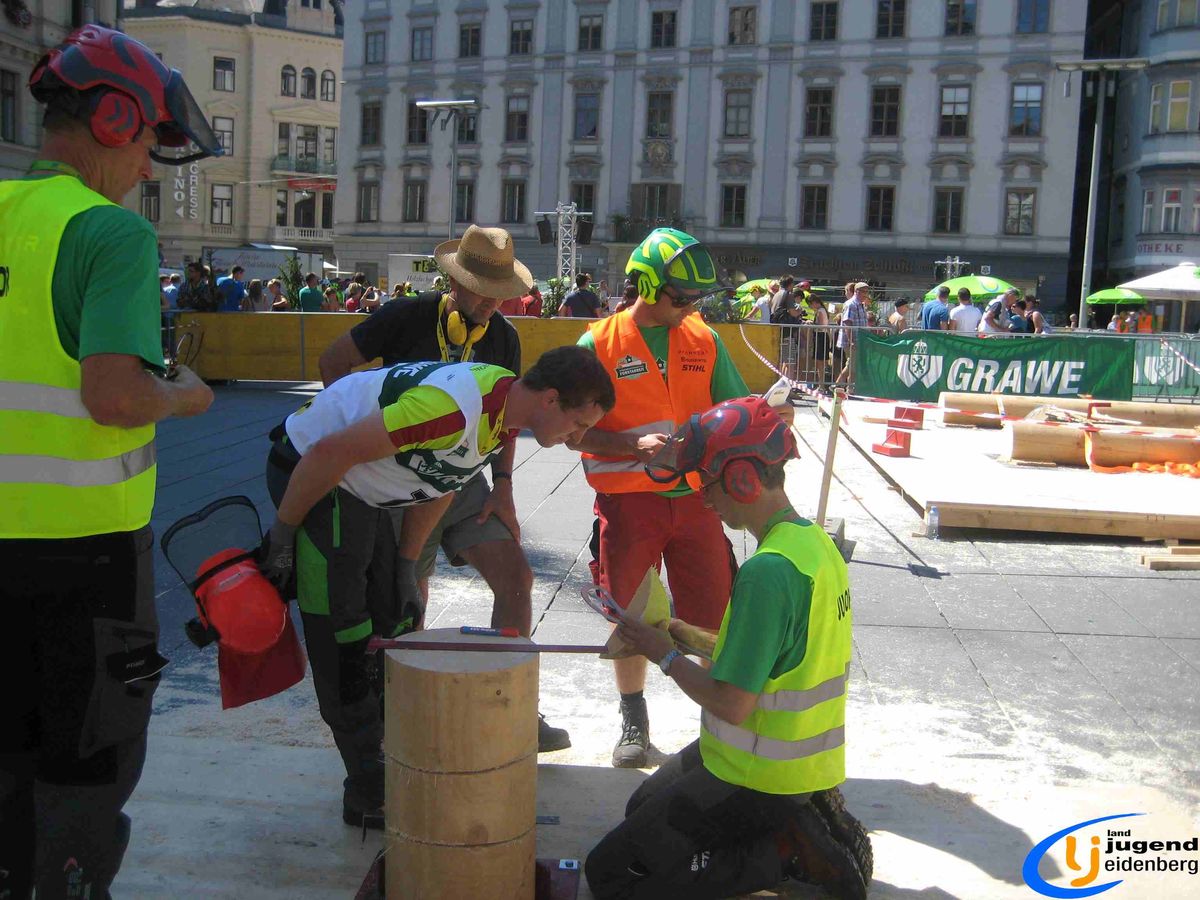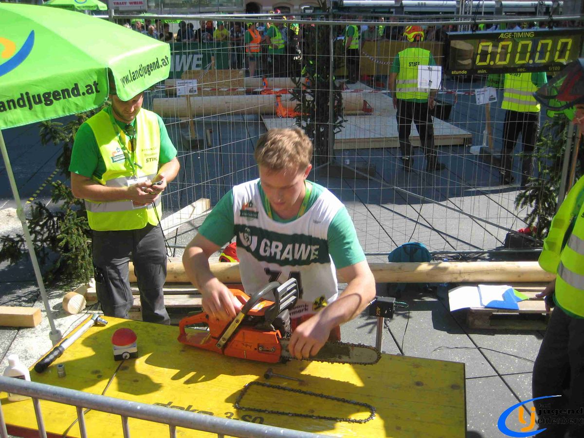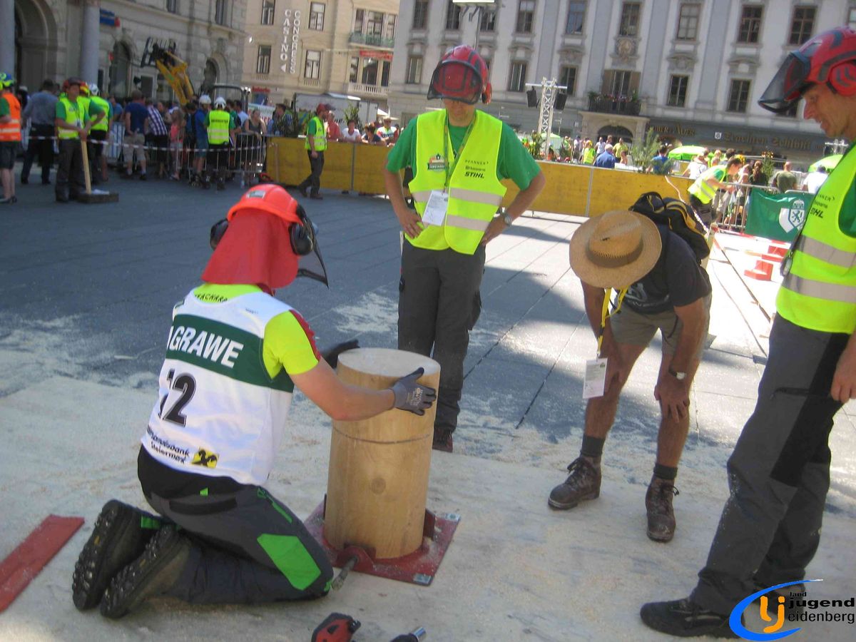 Der Austragungsort des diesjährigen Bundesbewerbes der Forstarbeit war die steirische Stadt Graz. Insgesamt 60 Starter aus allen Bundesländern Österreichs nahmen teil und fanden sich voller Kampfgeist am Grazer Hauptplatz ein. Unter den Teilnehmern aus Oberösterreich waren auch Lukas und Florian Mair aus Eidenberg vertreten.