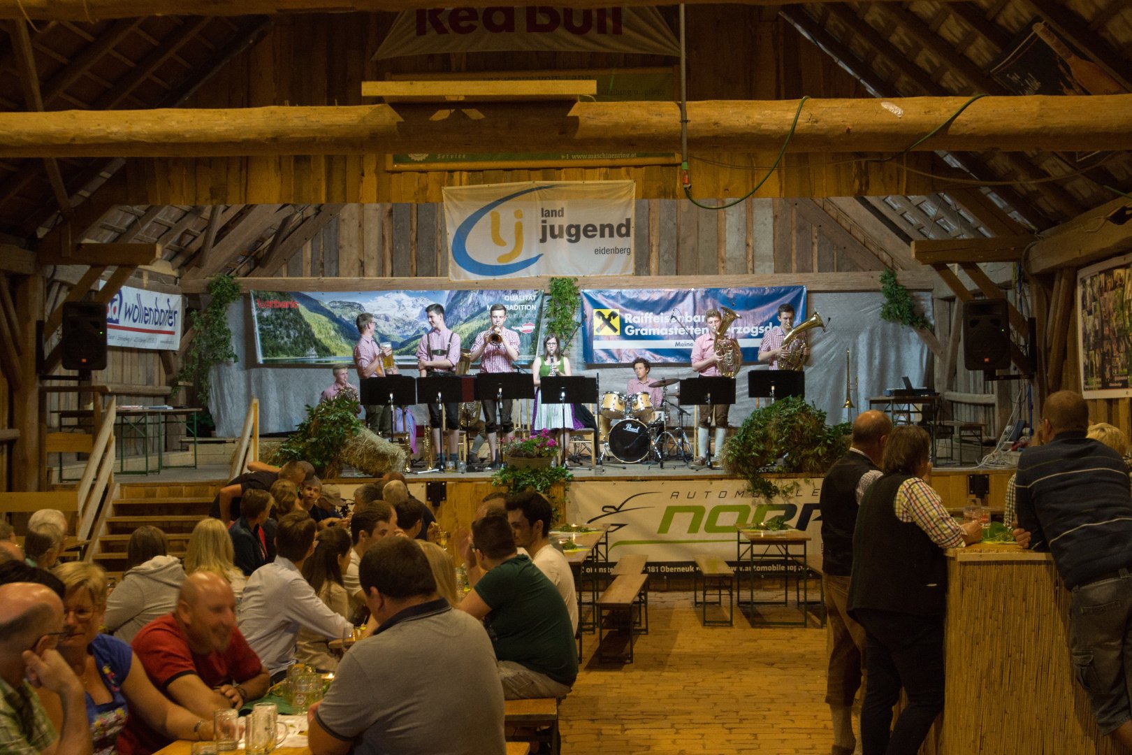 Wir von der Landjugend sorgten uns bestens für das Wohlergehen unserer Gäste und servierten frisches Bio Kotelett und Käsekrainer vom Grill. Um auch den Durst zu stillen schenkten wir Bier, Wein, Most und diverse Säfte aus der Region aus. Zum Schluss möchten wir uns noch einmal bei allen Gästen, Musikern und Helfern für diesen gelungenen Dämmerschoppen bedanken und hoffen jeden von euch nächstes Jahr wiederzusehen.