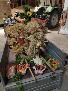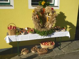 Die Segnung der Erntegaben und der Erntekrone fand am Parkplatz Wollendorfer statt. Anschließend wurde festlich zur Eucharistiefeier in die Pfarrkirche eingezogen. Anschließend genossen wir von der Landjugend noch ein "Bratl in der Rein" in einem Gasthof in Urfahr.