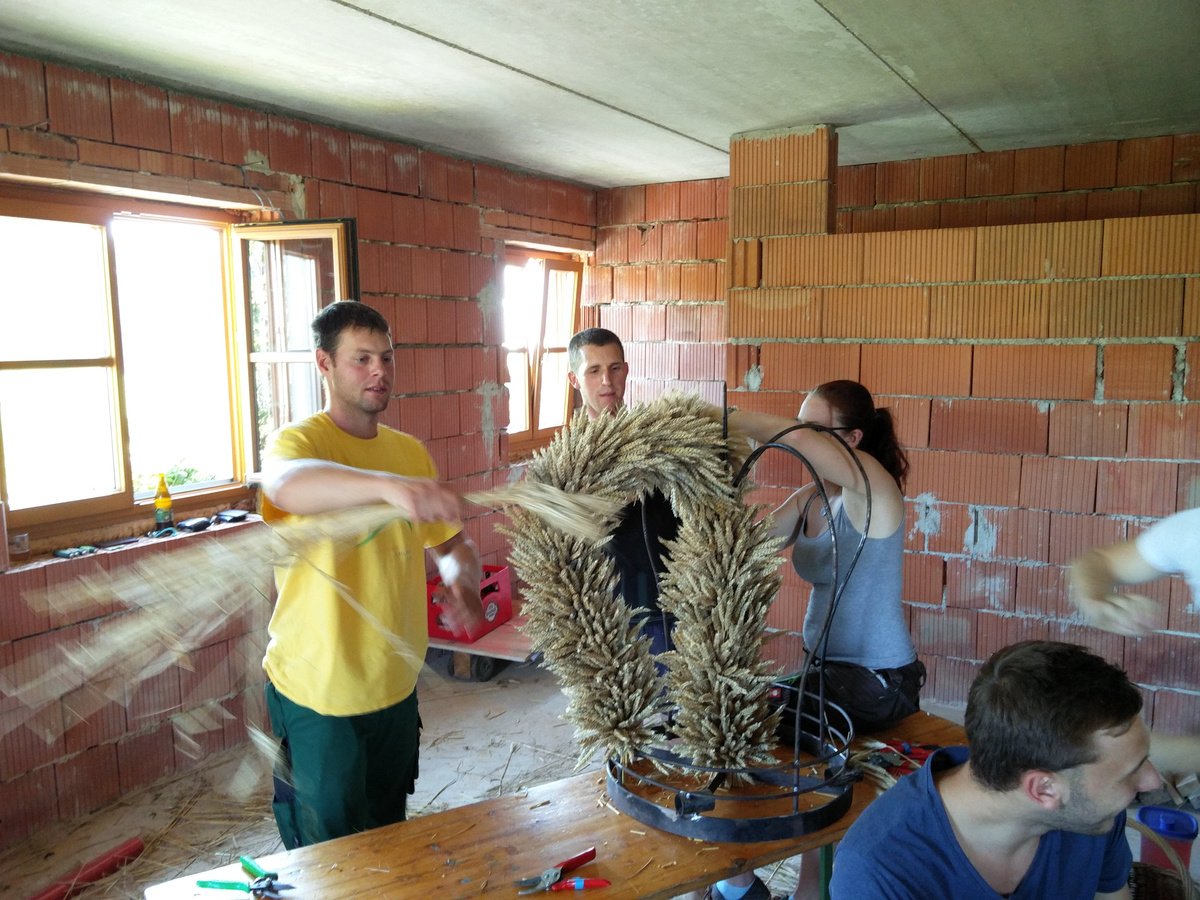 Am Samstag den 27. August banden wir unsere Erntekrone neu, wobei wieder vier verschiedene Getreidesorten zum Einsatz kamen.