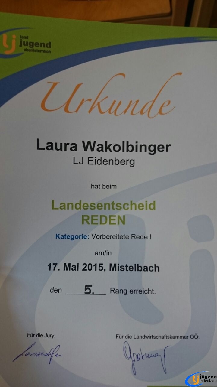 Am Sonntag, den 17. Mai 2015, vertrat uns Laura Wakolbinger beim Landesredewettbewerb in der LFS Mistelbach, WL. In der Kategorie Vorbereitete Rede unter 18 Jahren erreichte sie den hervorragenden fünften Platz! Wir gratulieren dazu sehr herzlich!