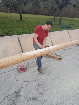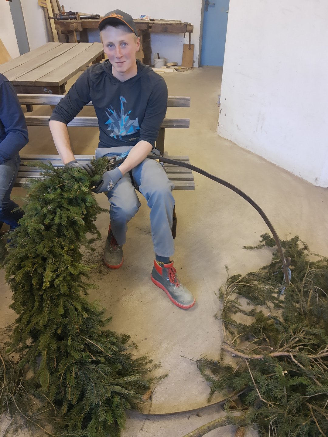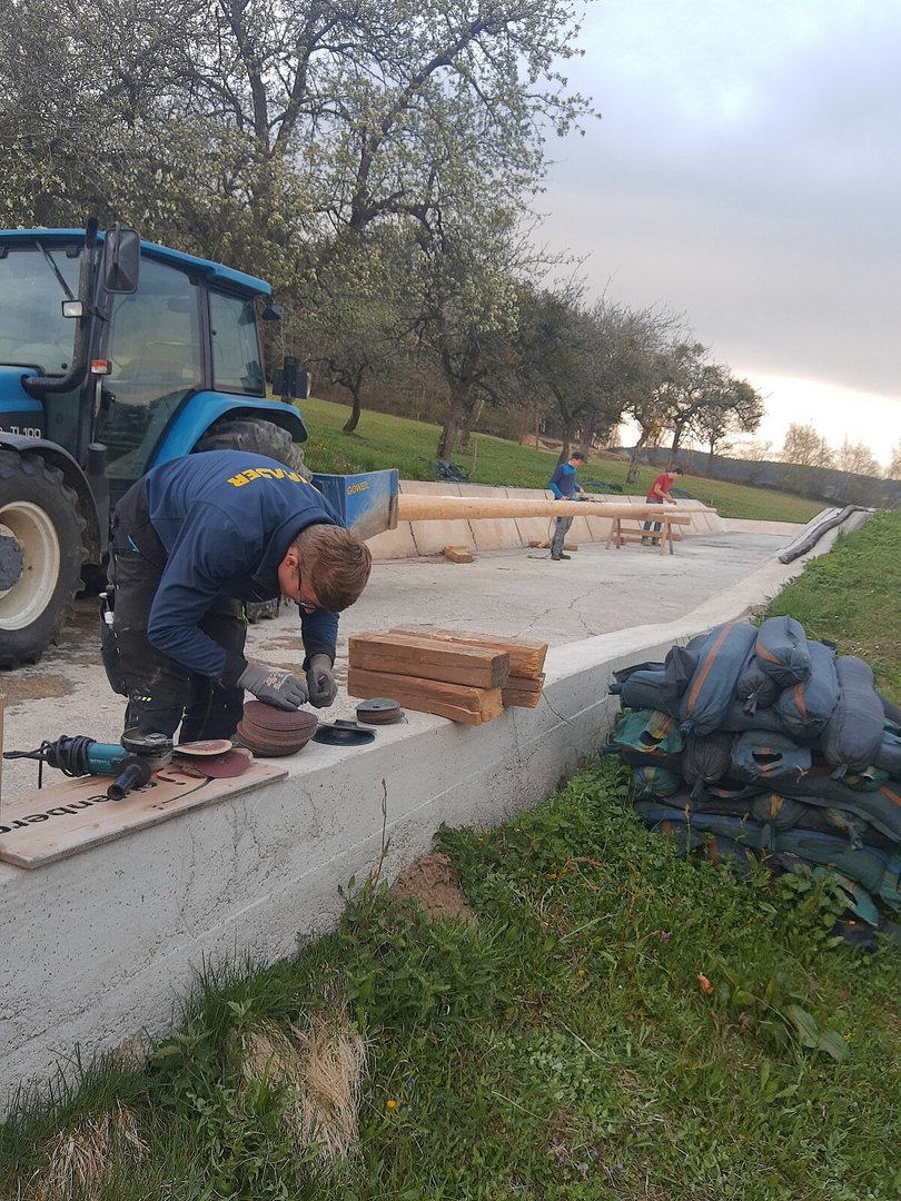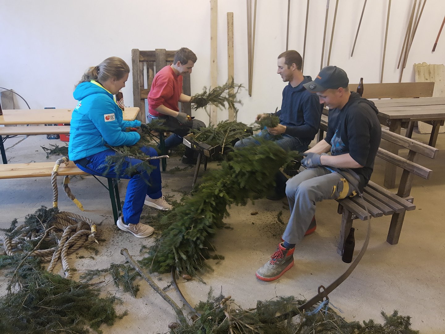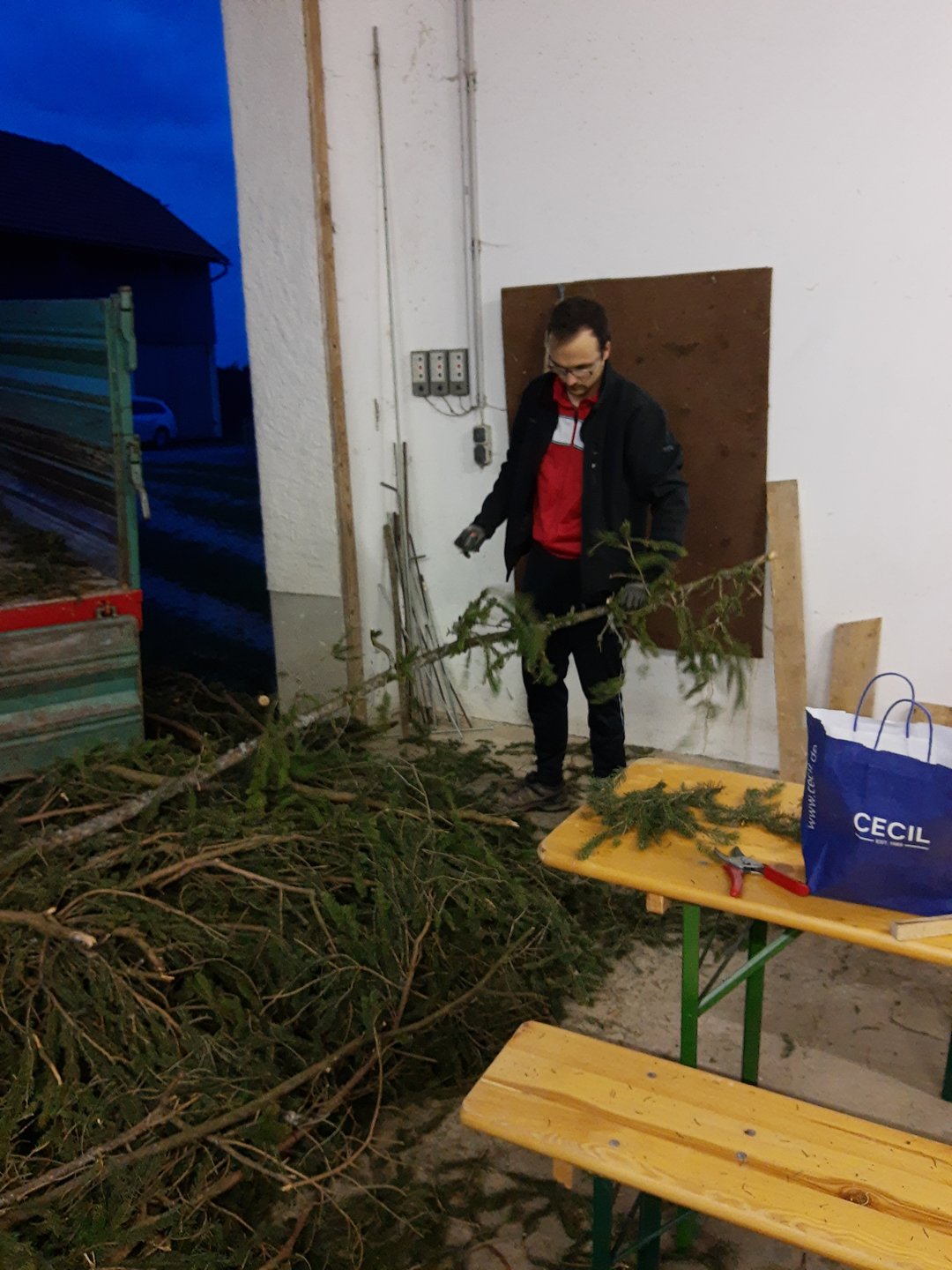 Am Donnerstag trafen wir uns beim Sulzerstetter um den Maibaum fürs Aufstellen am 1. Mai vorzubereiten und die Kränze zu binden.