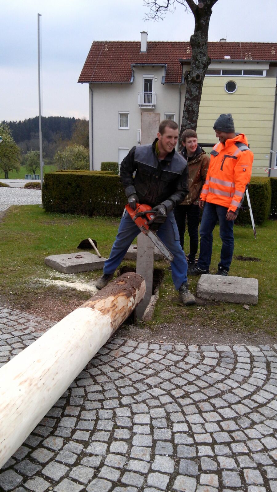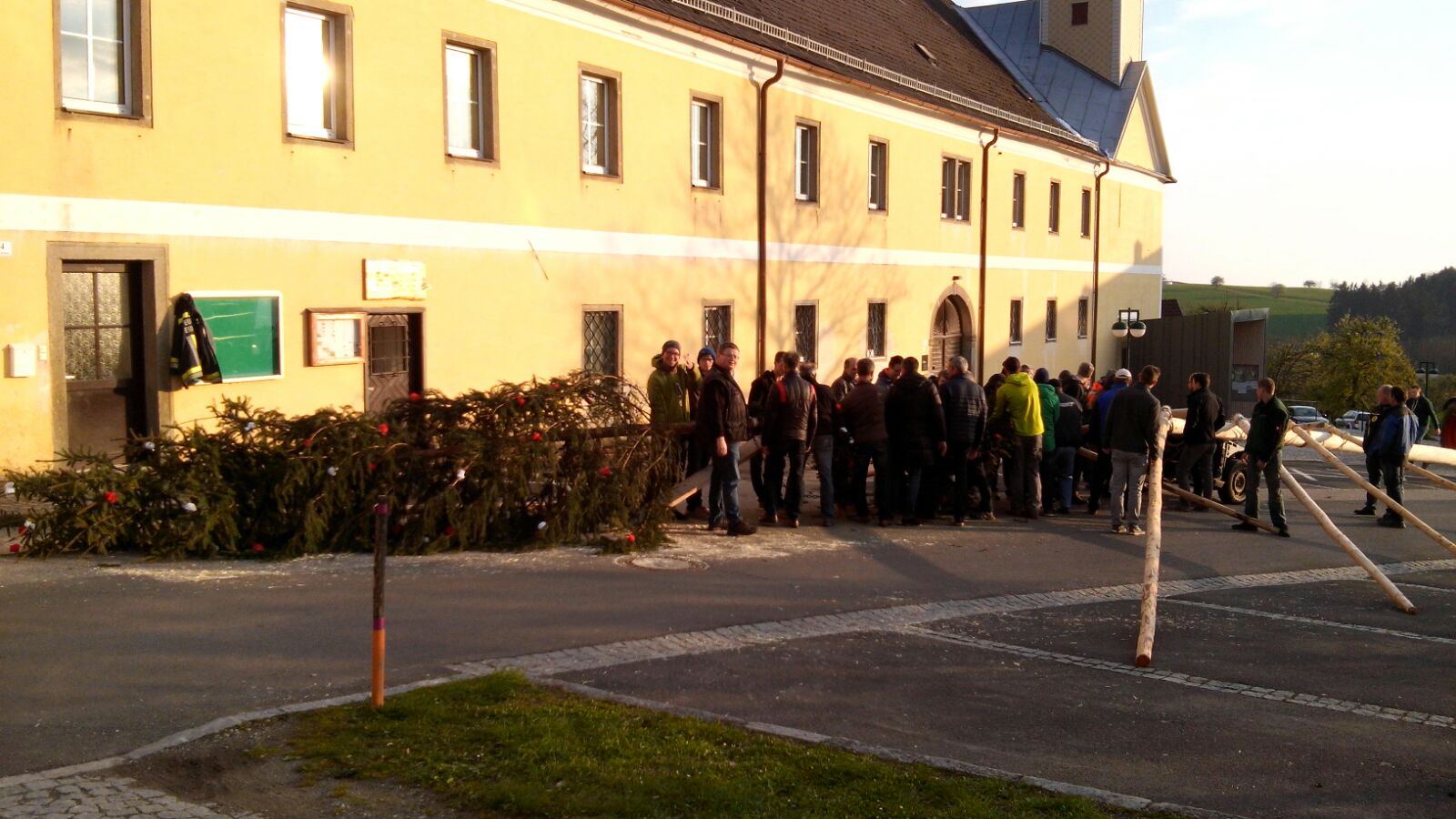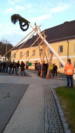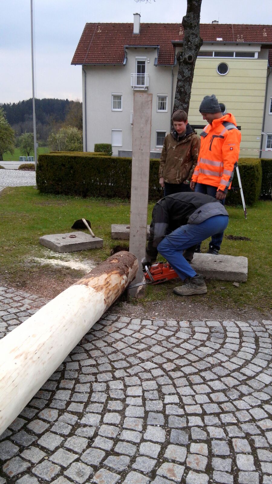 Wetterbedingt konnte der Maibaum erst einen Tag später (29.04.) als geplant aufgestellt werden.