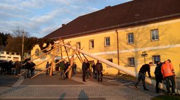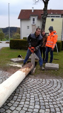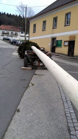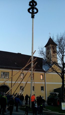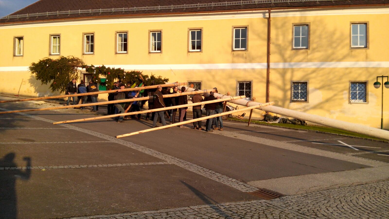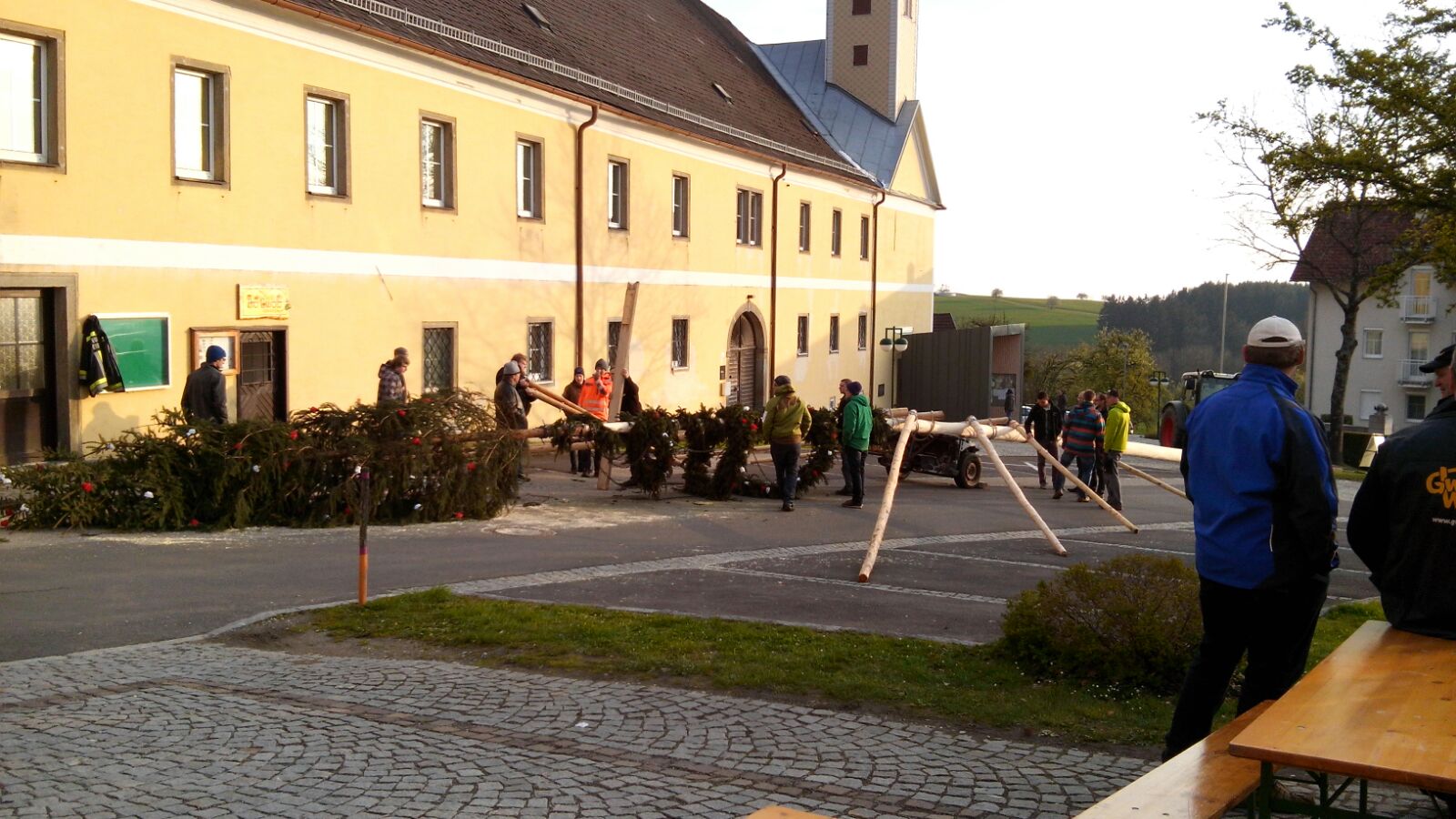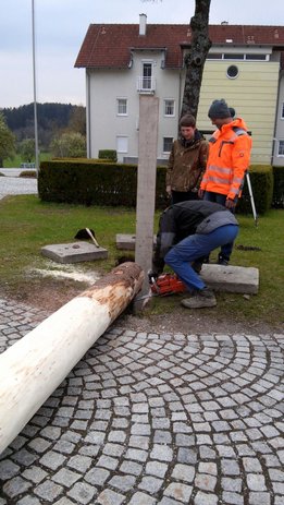 Wetterbedingt konnte der Maibaum erst einen Tag später (29.04.) als geplant aufgestellt werden.