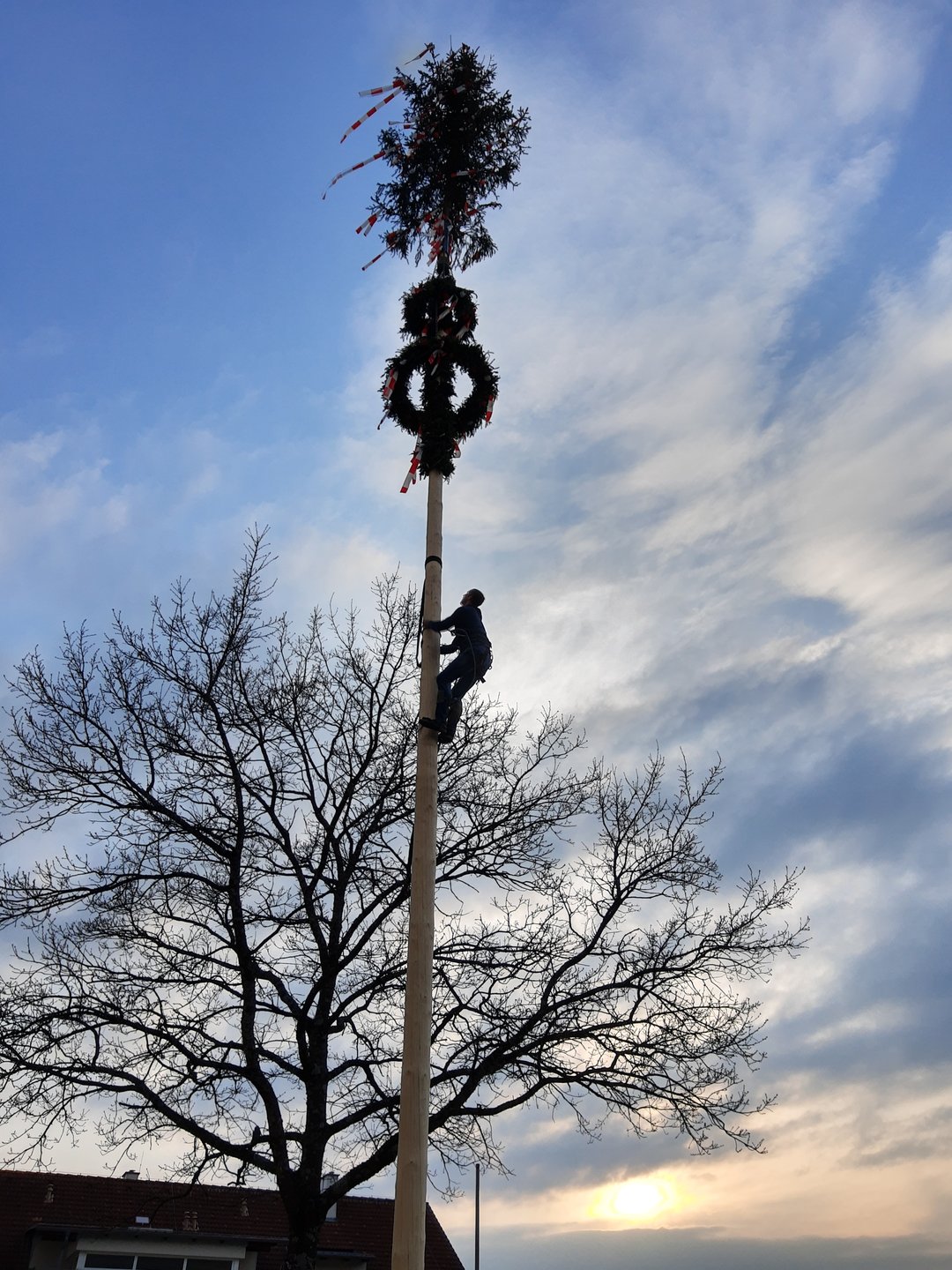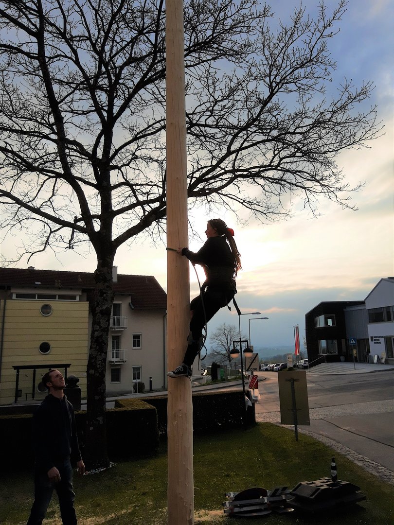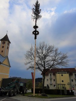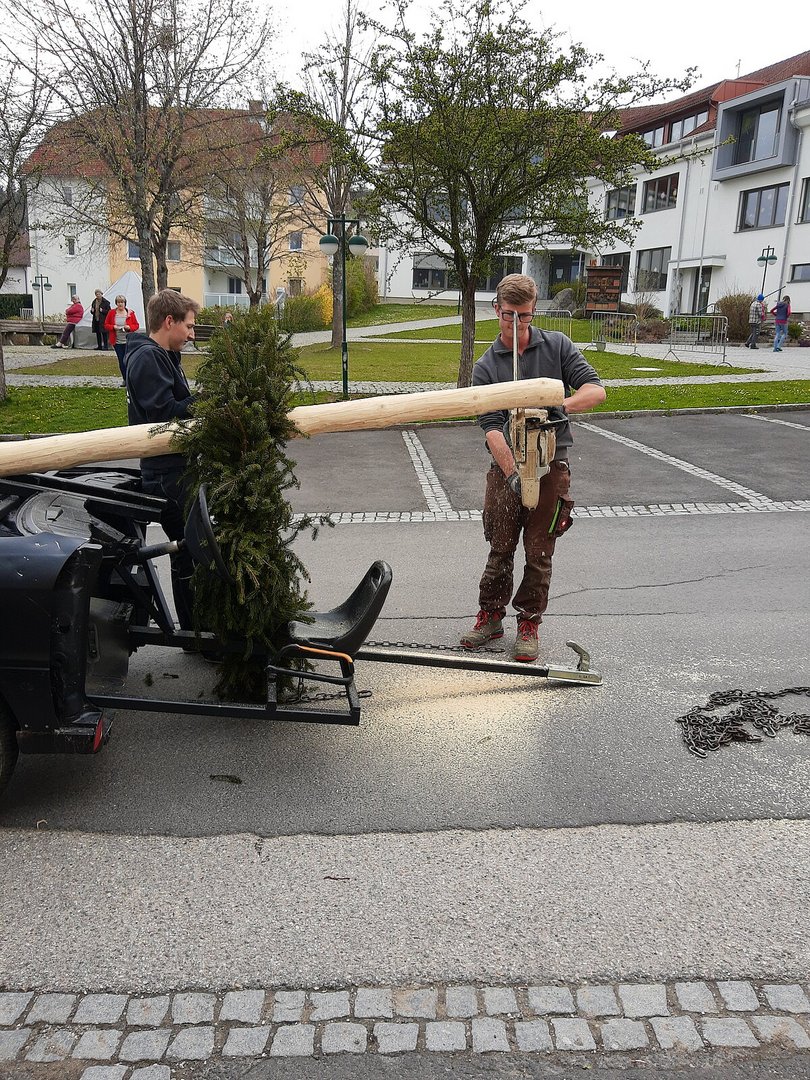 Update: In der Nacht von 2. auf 3. Mai wurde unser schöner Maibaum leider von Dieben entwendet. Verhandlungen zum Auslösen des Maibaums sind aktuell im Gange.
