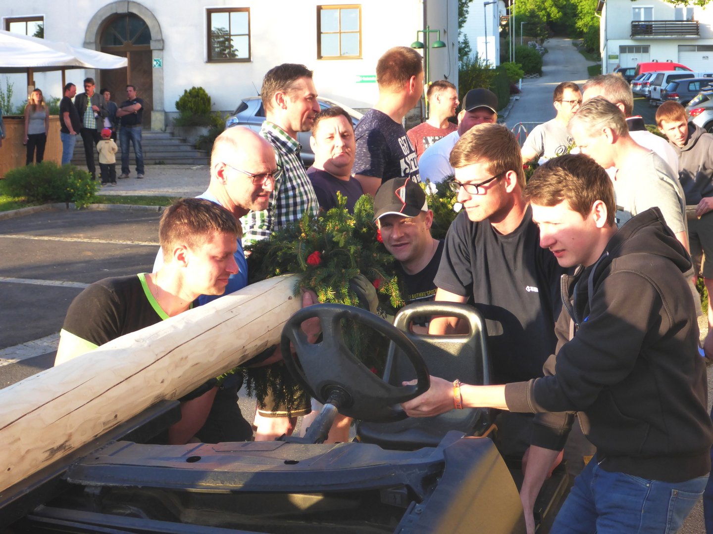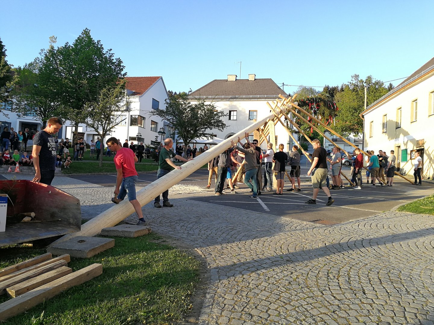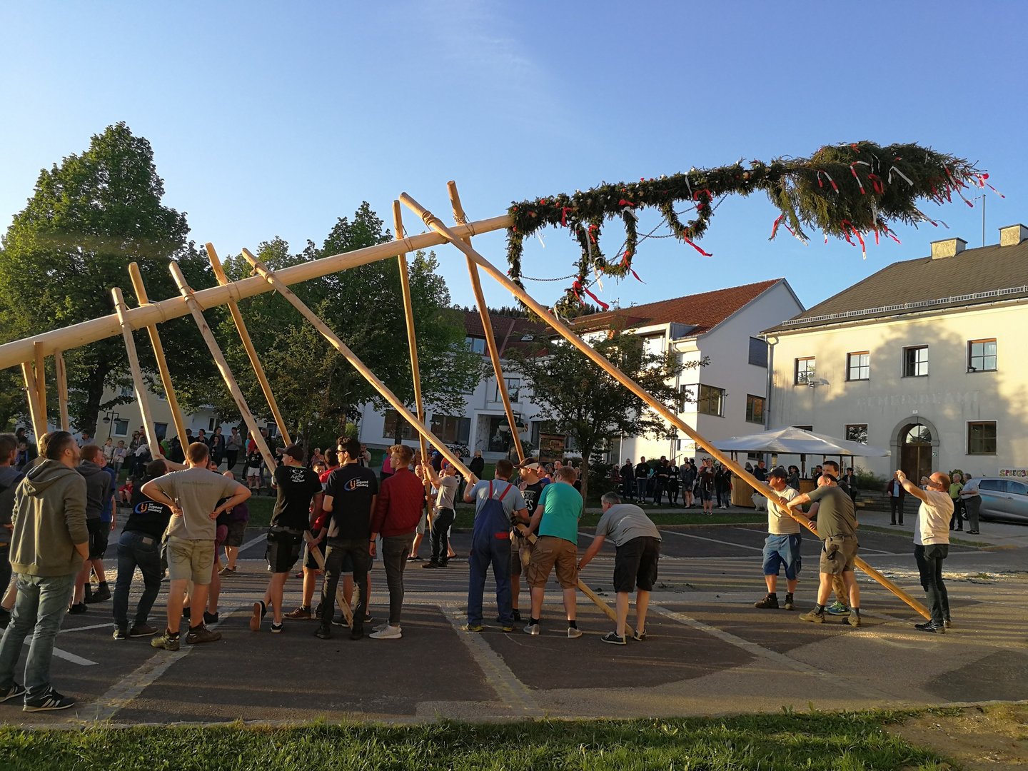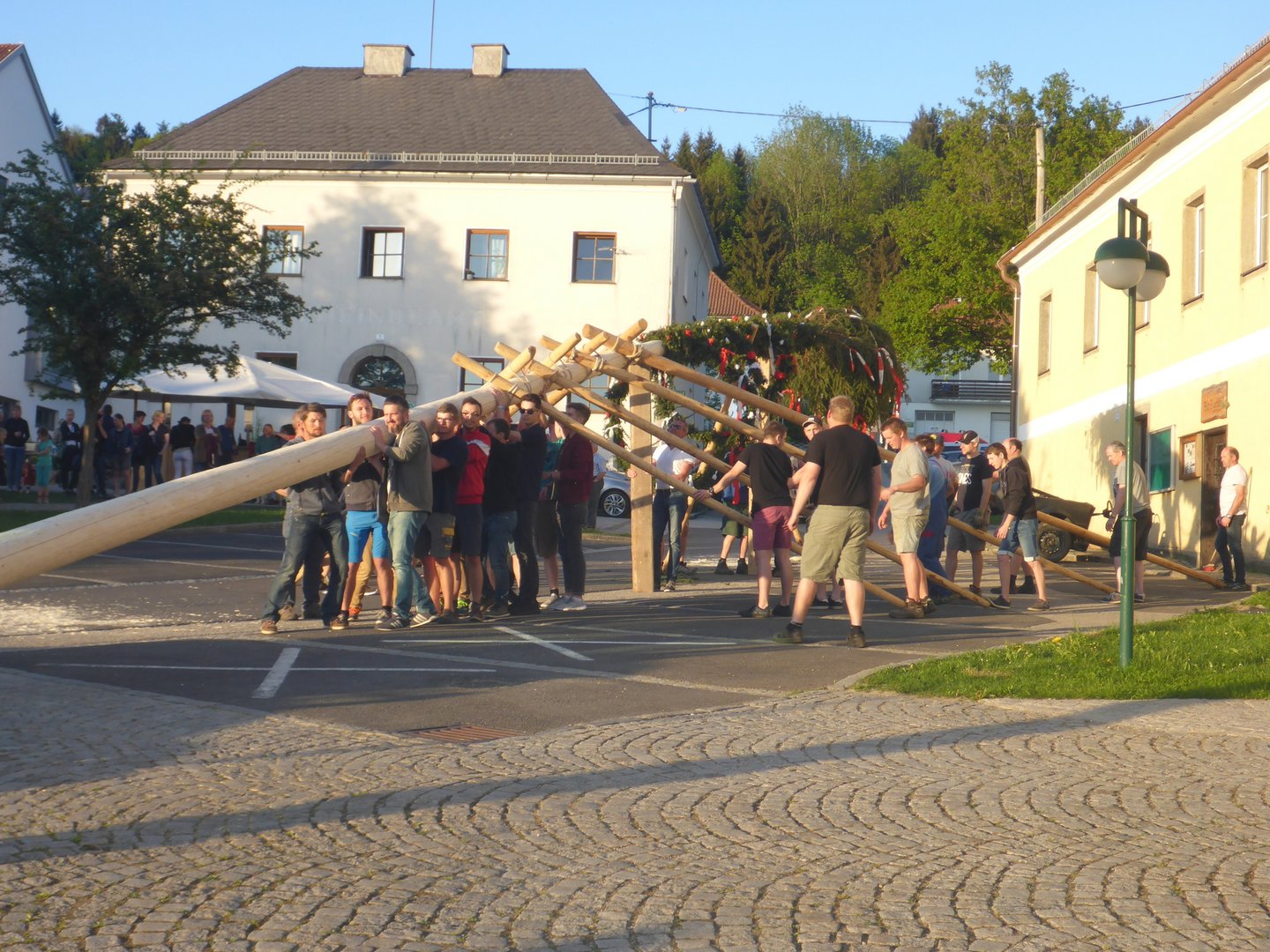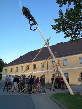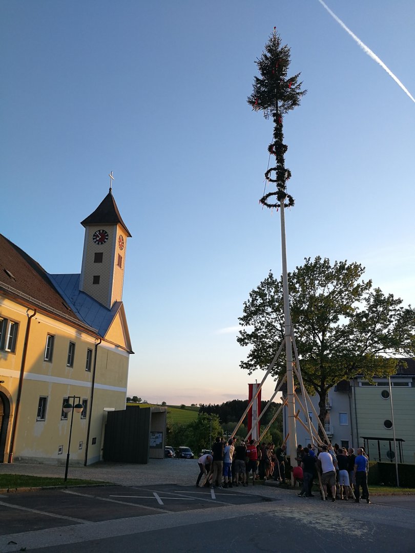 Bei Sonnenschein und angenehmen Temperaturen fand heuer das Maibaumaufstellen am 30. April um 19 Uhr am Ortsplatz in Eidenberg statt.