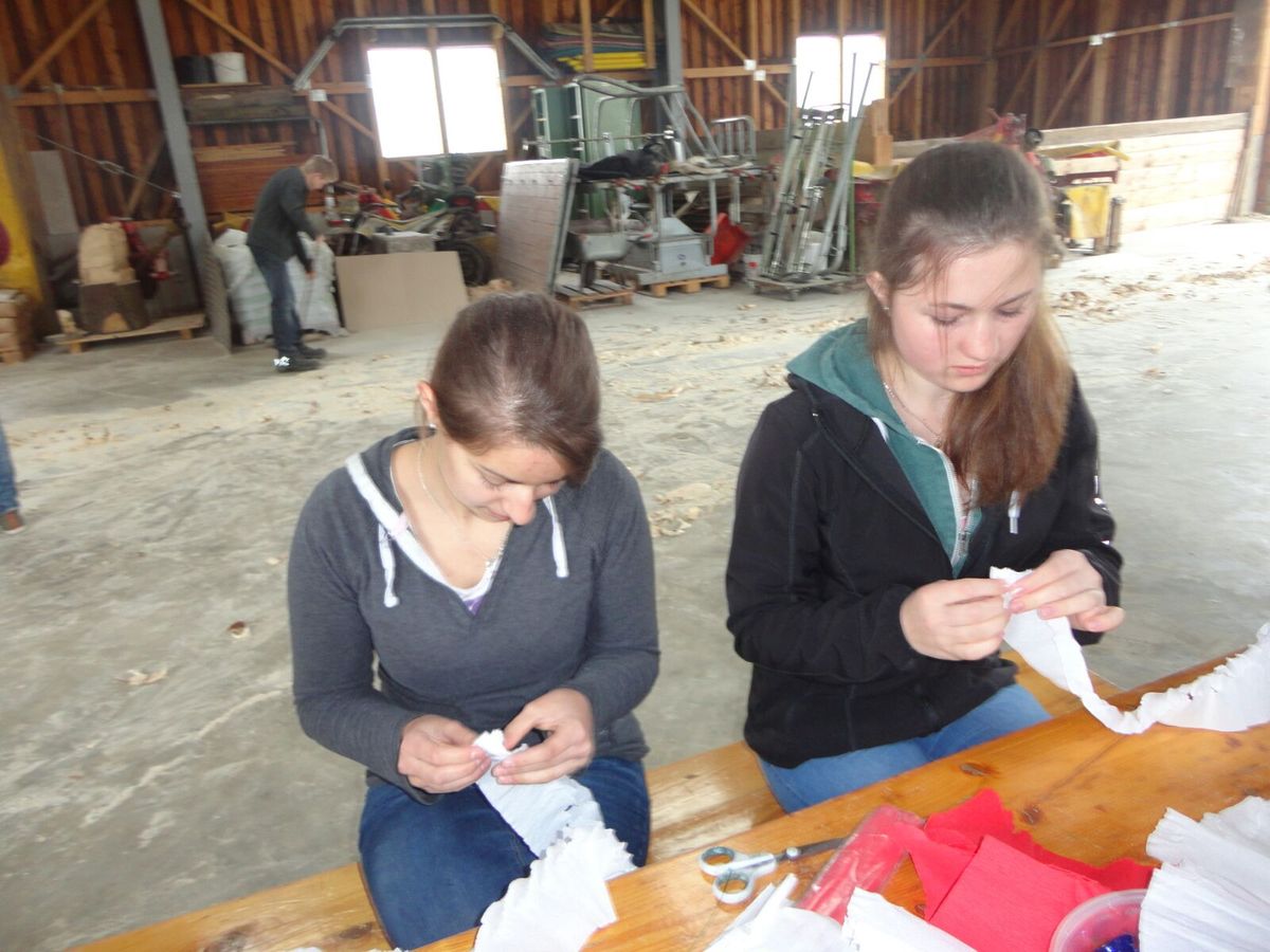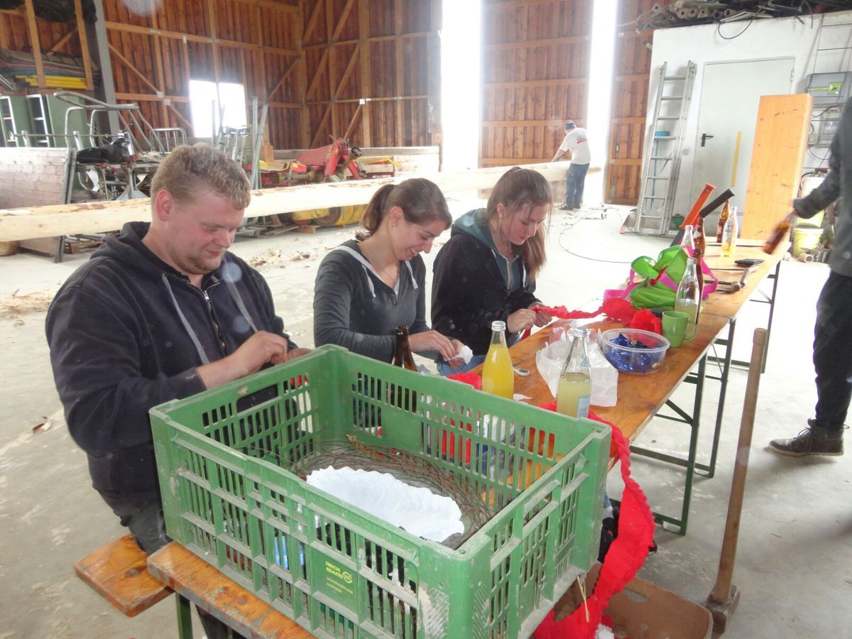 Unsere Vorbereitungen fürs Maibaumfest starteten bereits Ende März mit dem Umschneiden und Schälen unseres Baumes im Stiftswald in Eidenberg. Nebenbei noch ein großes Dankeschön an das Stift Wilhering, die den diesjährigen Baum gespendet haben. Weiter ging es mit dem Vorbereitungen am 23. April, wo wir uns zum Maibaum aufputzen, Kränze binden und Rosal binden bei Familie Mair trafen.