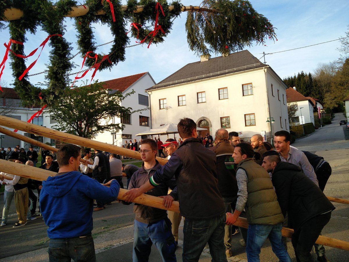 http://www.meinbezirk.at/linz/freizeit/ein-maibaum-der-nationen-vereint-d1722812.html Jedoch ist mit dem Maibaumfest die Maibaumzeit noch nicht zu Ende. Um zu verhindern, dass uns unser Baum abhanden kommt , trafen wir uns jeden Abend am Ortsplatz um auf unseren Maibaum aufzupassen.