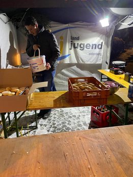 Neben Punsch und Glühmost gab es aus unserem neuen Grillpavillion auch Leberkässemmerl und Engelslocken zum Verzehr.