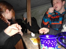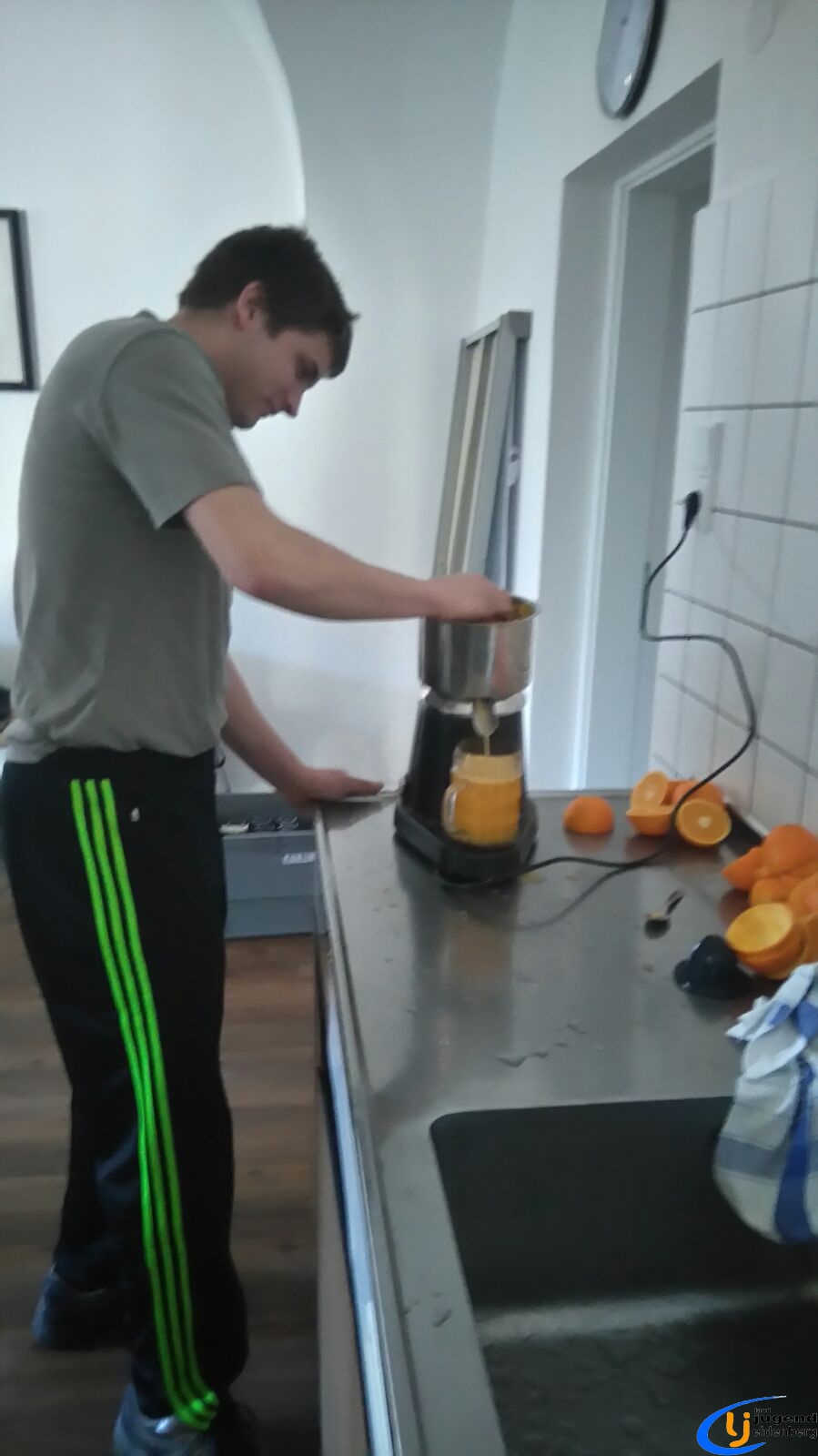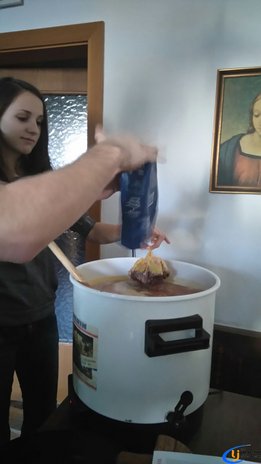 Gekocht wurde das köstliche Heißgetränk bereits ab ein Uhr Nachmittag. Highlight war für einige von uns die Orangenpresse, welche vollautomatisch Orangen auspressen lässt. Am Abend war der Beginn für 19h angesetzt und die ersten Gäste trafen bereits um diese Uhrzeit ein. Bei einem herzhaften Leberkäsesemmerl, „Engelslocken“, Punsch oder Bier war für jeden das Richtige dabei und so verbrachten wir einen tollen gesellschaftlichen Abend.