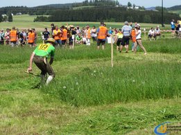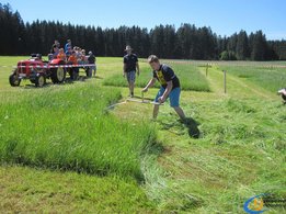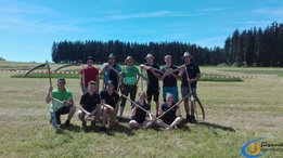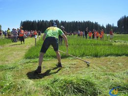Am 22. Mai machten wir uns mit insgesamt neun Mähern auf den Weg nach Reichenau, wo der heurige Bezirksentscheid im Sensenmähen bei strahlend heißem Wetter stattfand.