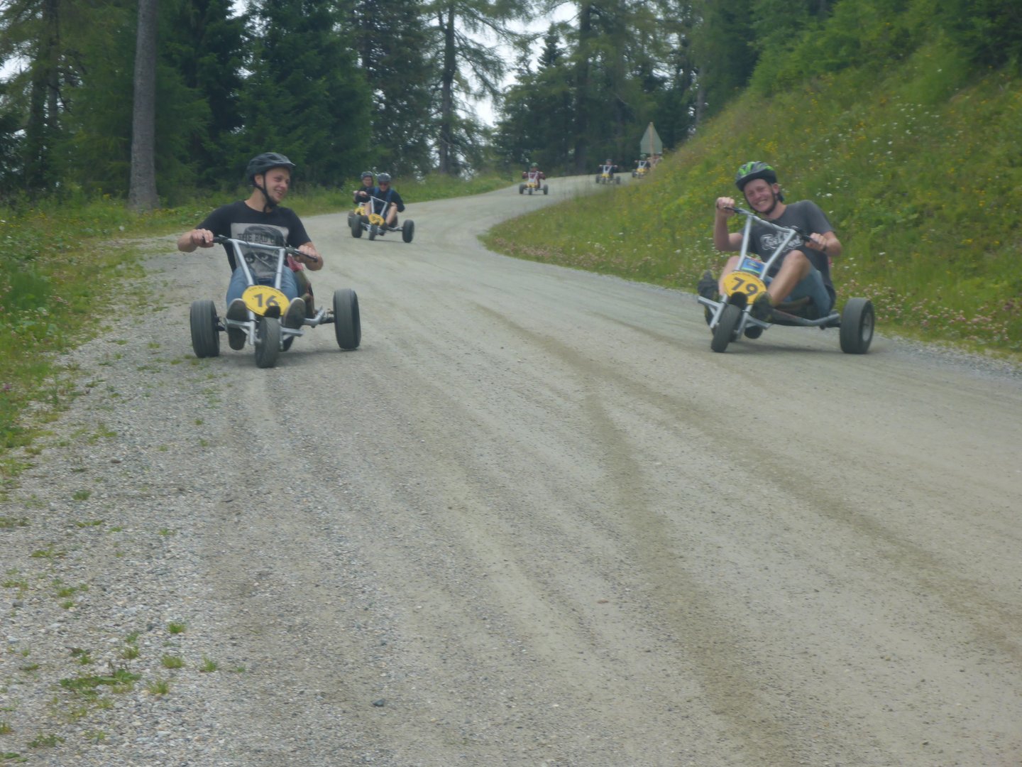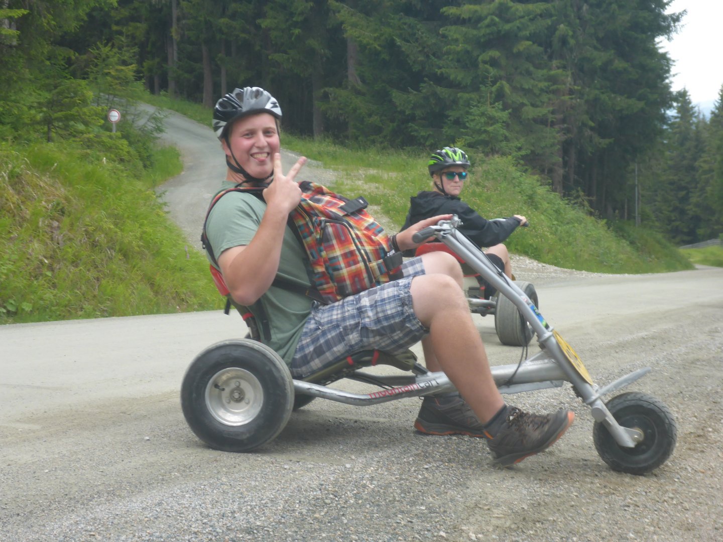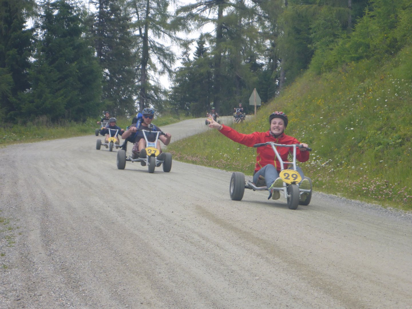 Der erste Stopp unserer Tour war die Talstation der Hochwurzen Gipfelbahn. Gottseidank war das Wetter nicht allzu heiß, so fiel der Aufstieg zum Gipfel nicht ganz so schwer. Oben angekommen genossen wir zuerst einmal den schönen Ausblick und nutzten diesen gleich für ein Gruppenfoto. Hinunter ging es für uns mit Mountain Gokarts. Nach dem Mittagessen fuhren wir weiter zum Hochseilgarten nach Ramsau. Einige nutzten auch die Möglichkeit mit dem Alpine-Coaster zu fahren, welcher sich direkt daneben befand. Nachdem wir unsere Unterkunft am Abend bezogen hatten, kochten wir uns unser Abendessen selbst. Verspeist wurden Spaghetti Bolognese, welche mit Liebe in großen Mengen zubereitet wurden. Später beschlossen wir noch auf ein Festl in der Ramsau zu gehen. Am Sonntag hatten wir leider kein schönes Wetter, weshalb wir ins Erlebnisbad nach Schladming, anstatt zum Gleinkersee fuhren. Nach dem Mittagessen ging es wieder heimwärts, mit einem Zwischenstopp in Rossleithen bei der lieben Johanna auf Kaffee und Kuchen.
