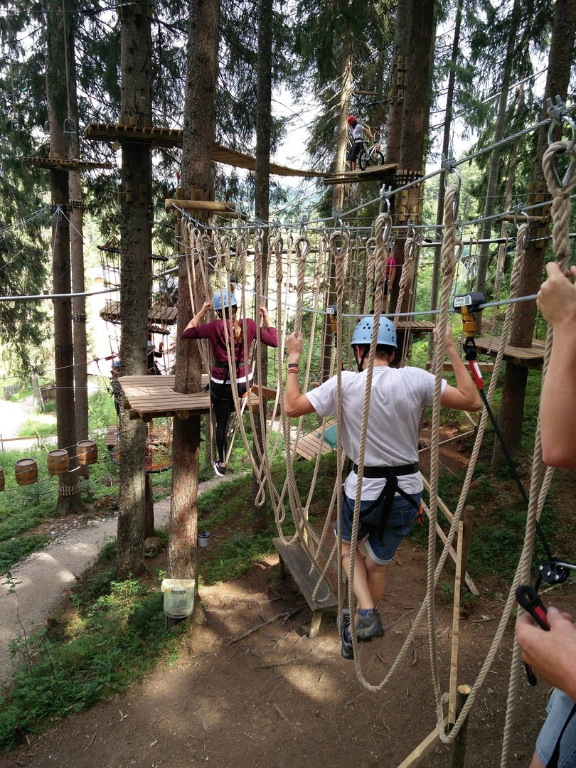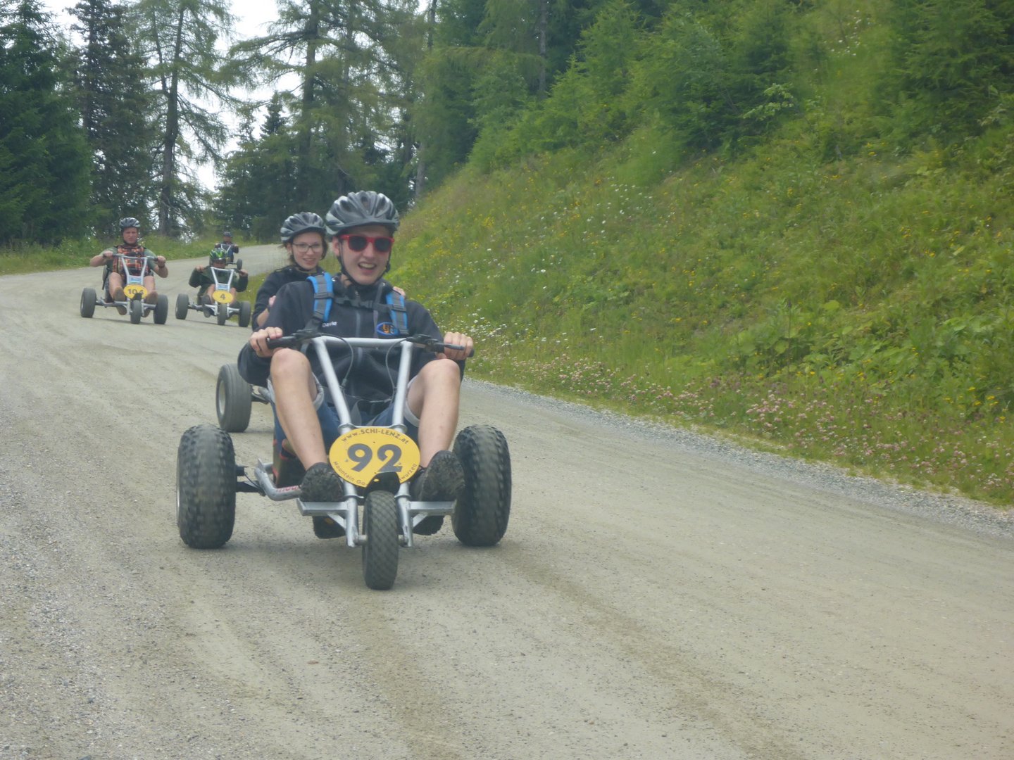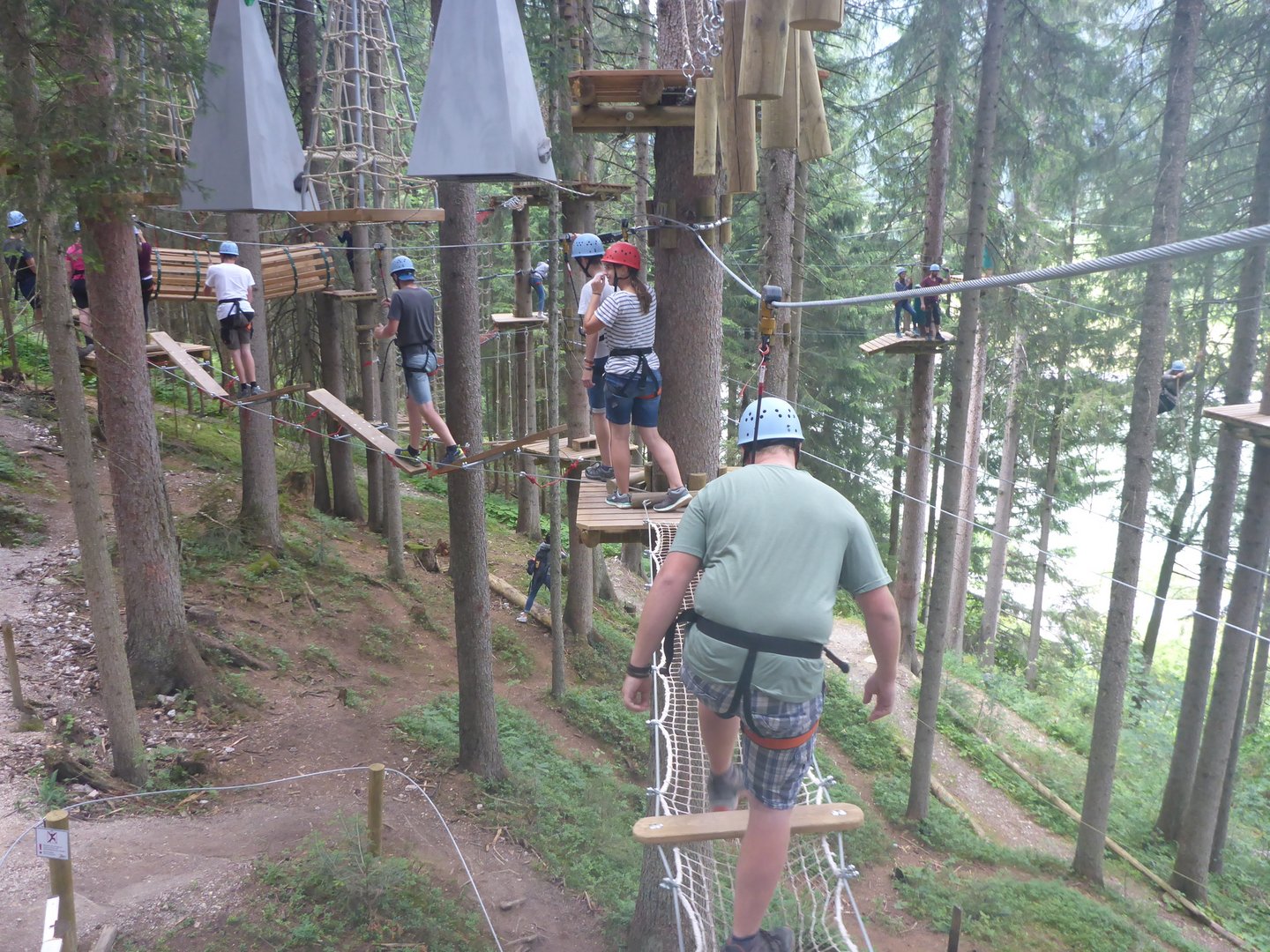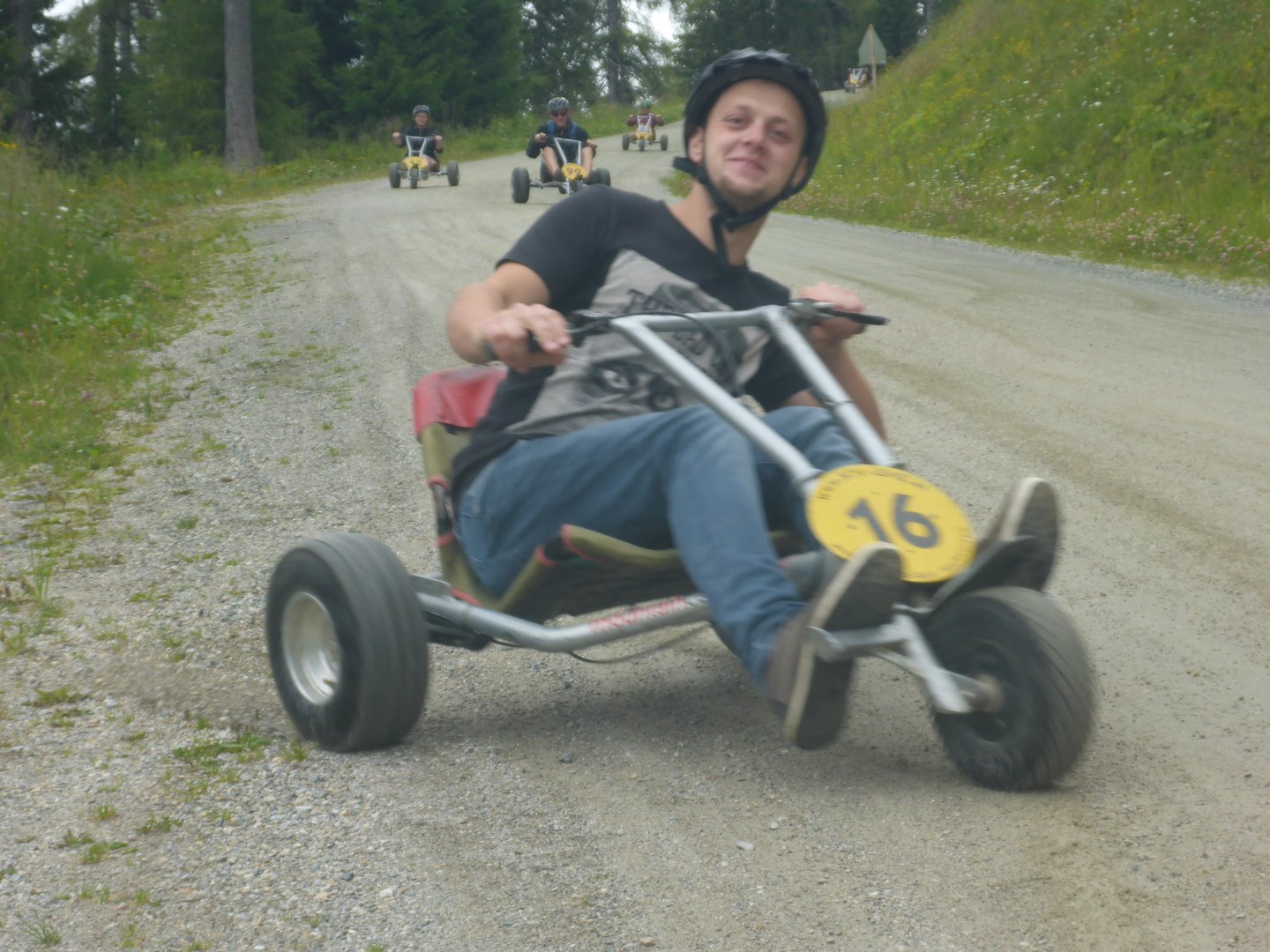 Der erste Stopp unserer Tour war die Talstation der Hochwurzen Gipfelbahn. Gottseidank war das Wetter nicht allzu heiß, so fiel der Aufstieg zum Gipfel nicht ganz so schwer. Oben angekommen genossen wir zuerst einmal den schönen Ausblick und nutzten diesen gleich für ein Gruppenfoto. Hinunter ging es für uns mit Mountain Gokarts. Nach dem Mittagessen fuhren wir weiter zum Hochseilgarten nach Ramsau. Einige nutzten auch die Möglichkeit mit dem Alpine-Coaster zu fahren, welcher sich direkt daneben befand. Nachdem wir unsere Unterkunft am Abend bezogen hatten, kochten wir uns unser Abendessen selbst. Verspeist wurden Spaghetti Bolognese, welche mit Liebe in großen Mengen zubereitet wurden. Später beschlossen wir noch auf ein Festl in der Ramsau zu gehen. Am Sonntag hatten wir leider kein schönes Wetter, weshalb wir ins Erlebnisbad nach Schladming, anstatt zum Gleinkersee fuhren. Nach dem Mittagessen ging es wieder heimwärts, mit einem Zwischenstopp in Rossleithen bei der lieben Johanna auf Kaffee und Kuchen.