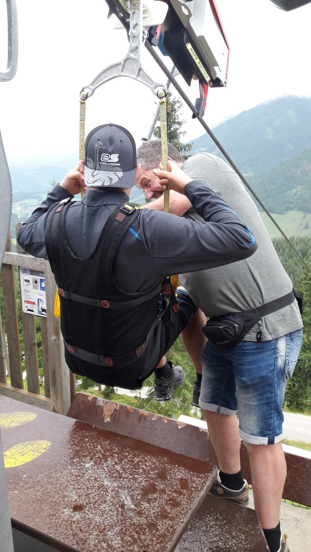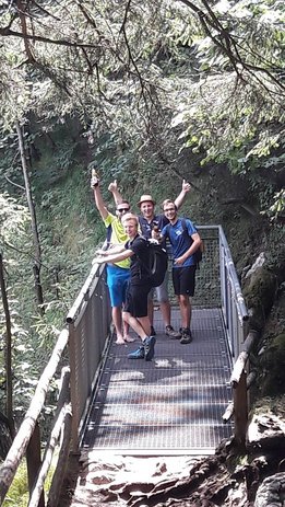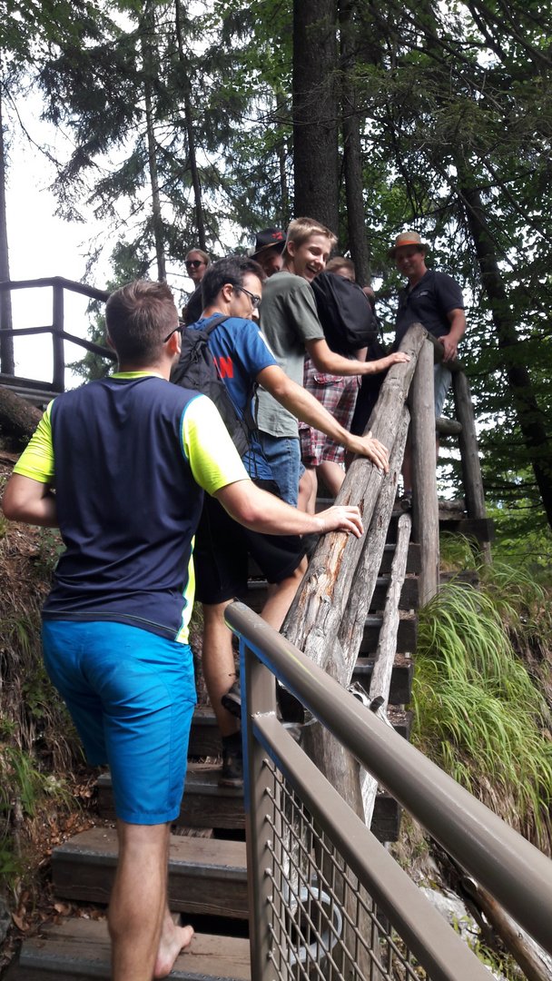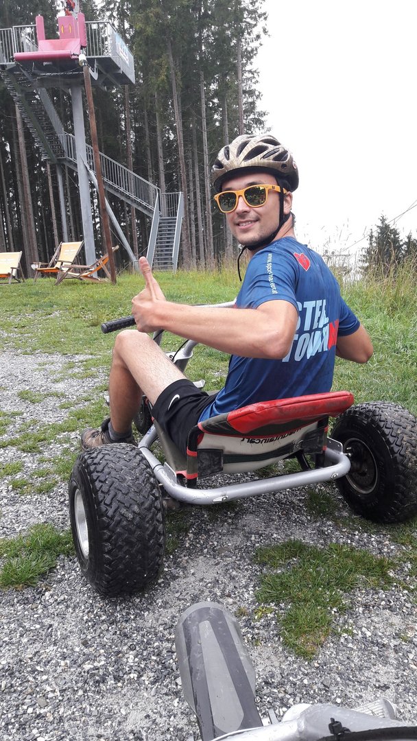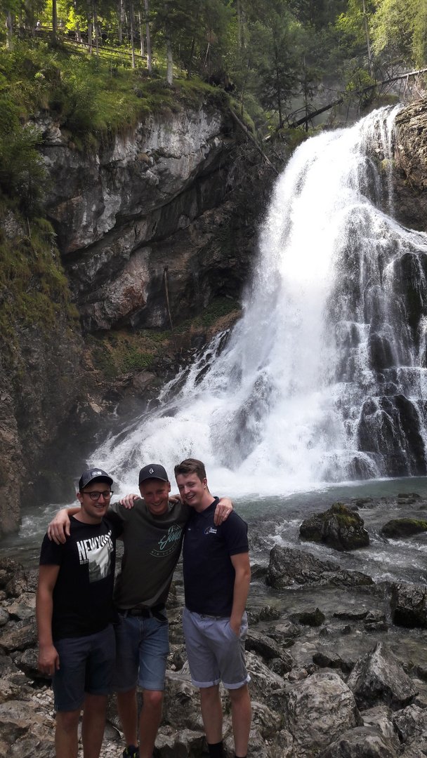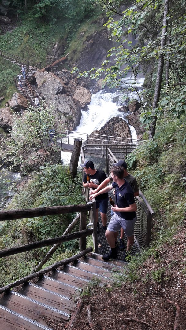 Beim Sommerausflug ging es heuer zuerst zum Gollinger Wasserfall. Das Wetter hat es relativ gut mit uns gemeint und so war es eine angenehme, kurze Wanderung zu dem schönen Wasserfall. Kurz nachdem wir dann wieder in den Autos saßen, fing es zu regnen an und so blieb es den restlichen Tag. Unser nächster Stop war Werfenweng, wo wir zuerst zu Mittag gegessen haben und dann mit der Gondel auf den Berg fuhren. Hinunter ging es von der Berg- zur Mittelstation mit dem "Fun Liner" und anschließend weiter ins Tal mit Mountaincarts. Im Anschluss fuhren wir nach Altenmarkt im Pongau in unsere Unterkunft. Dort bezogen alle erstmal die Zimmer und danach wurde das Abendessen selber gekocht. Es gab eine große Menge Spaghetti, die aber restlos verspeist wurde. Später am Abend entschieden wir uns noch, das Gardefest in Radstadt zu besuchen. Am Sonntag ging es nach dem Frühstück in die "Therme Amade" wo wir dann noch entspannen konnten. Für die Aufgeweckteren gab es auch ein paar tolle Rutschen. Nach ein paar angenehmen Stunden in der Therme, als Abschluss eines gelungenen Sommerausflugs, ging es auch schon wieder in Richtung Heimat.